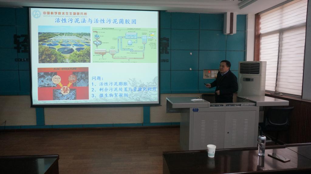 邱东茹教授做了题为“活性污泥微生物胞外多聚物生物合成途径和菌胶团形成调控机制”的学术报告。报告介绍了活性污泥法是市政污水和工业废水处理主流技术。菌胶团形成是泥水重力分离和污泥回用的前提,是该工艺成功的关键。通过活性污泥微生物组和菌胶团形成机制研究,发现在菌胶团形成菌动胶菌(Zoogloea)和水居菌(Aquincola)中除了胞外多糖合成相关基因和基因簇,两个编码天冬酰胺合成酶的旁系同源基因及RpoN sigma 因子为菌胶团形成所需。此外邱东茹教授对于活性污泥法技术应用于市政污水和工业废水处理也提出了一些思考。报告结束后,邱东茹教授还耐心详尽地解答了现场老师和研究生提出的问题,使大家开阔了视野,解除了疑惑,与会师生都感到获益匪浅。
