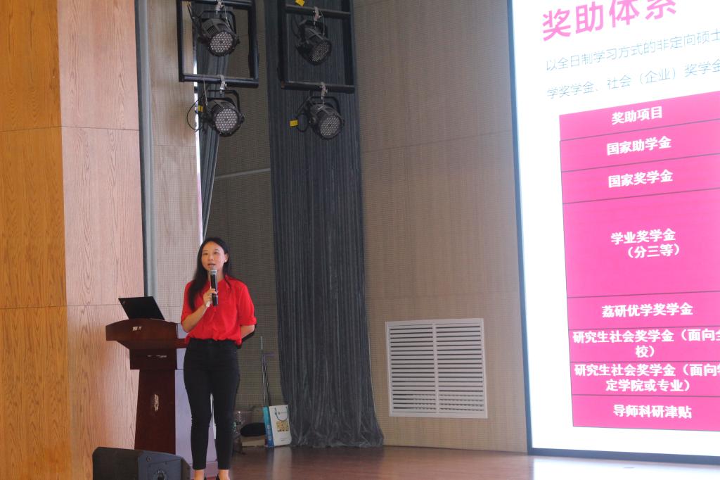 会议第四项,深圳大学环境工程系刘安做招生宣传。她用视频清晰生动地展现了深圳大学的学院环境与发展历程,随后详细讲述了深圳大学的学科评估、奖学金制度、校园生活等。在讲解最后,她给出深圳大学化学与环境工程学院的联系方式,鼓励同学们积极报考,展现出对招贤纳士的渴望。
