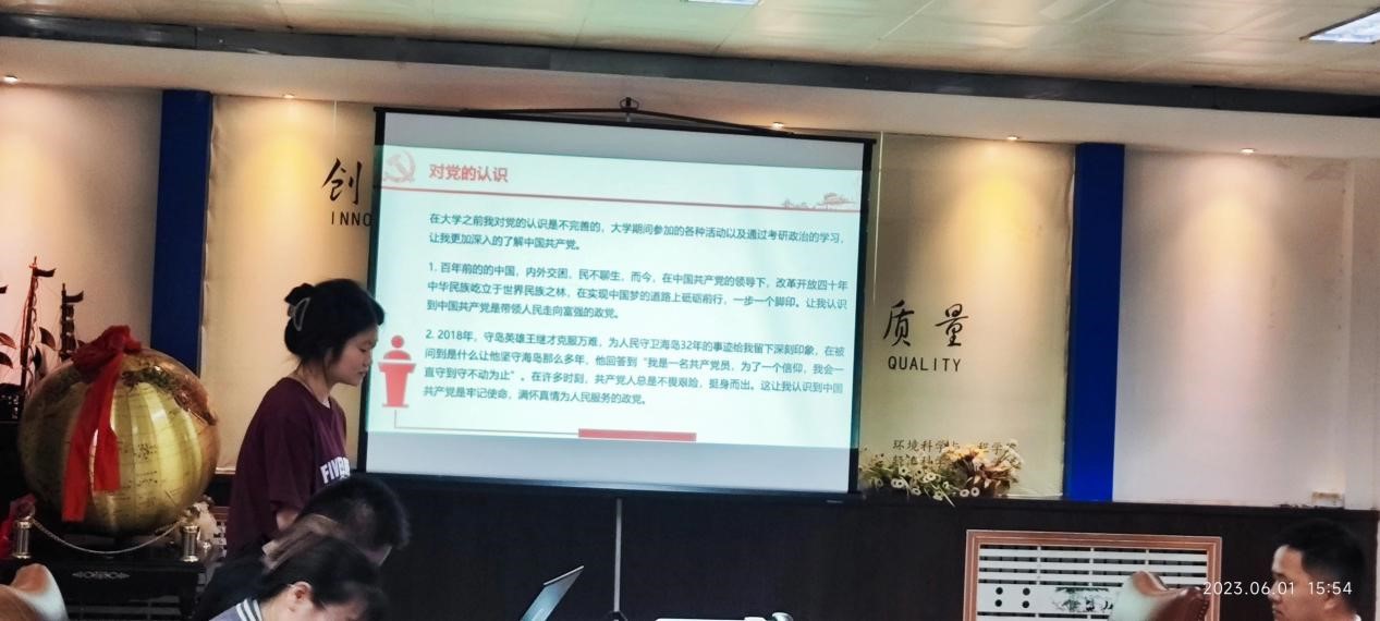 接着,安搏茹、高菡、徐跃男、汲绍文、万学雅五位积极分子对培养期间的情况向支部做以汇报。他们分别从个人情况、家庭背景、入党动机、优点与不足等方面汇报了自己在培养期间的基本情况。